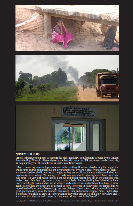 In December 2008, reports begin to emerge regarding the use of cluster munitions on civilian areas. The use of banned weapons on civilian targets becomes a systemic practice by the Sri Lankan Army. Meanwhile, in December..Read More
