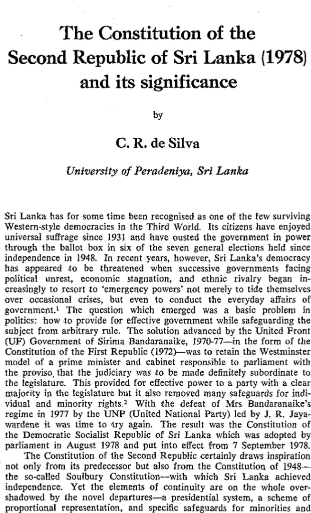 President JR Jayewardena is Elected, Bringing an Upsurge in Anti-Tamil State Violence