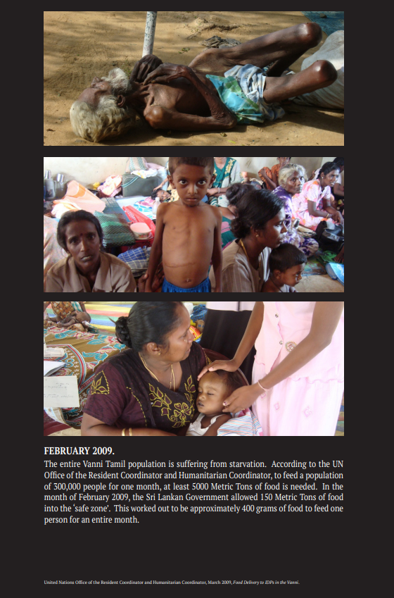 The entire Vanni Tamil population is suffering from starvation. According to the UN Office of the Resident Coordinator and Humanitarian Coordinator, to feed a population of 300,000 people for one month, at least 5000 Metric..Read More