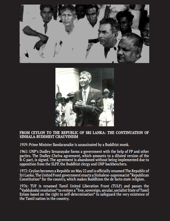 TUF is renamed Tamil United Liberation Front (TULF) and passes the “Vaddukodai resolution” to restore a “free, sovereign, secular, socialist State of Tamil Eelam based on the right to self-determination” to safeguard the very existence..Read More
