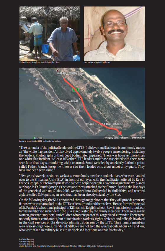 “The surrender of the political leaders of the LTTE- Pulidevan and Nadesan- is commonly known as “the white flag incident”. It involved approximately twelve people surrendering, including the leaders. Photographs of their dead bodies later..Read More