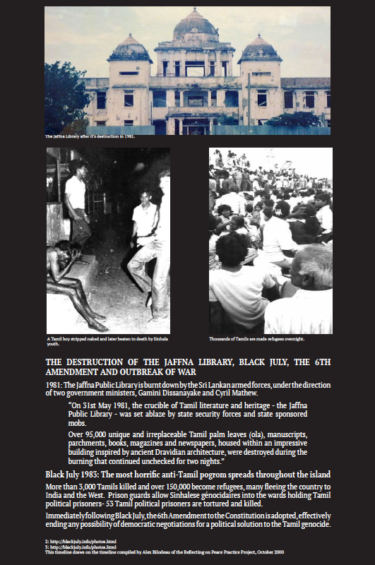 More than 3,000 Tamils killed and over 150,000 become refugees, many fleeing the country to India and the West. Prison guards allow Sinhalese génocidaires into the wards holding Tamil political prisoners- 53 Tamil political prisoners..Read More